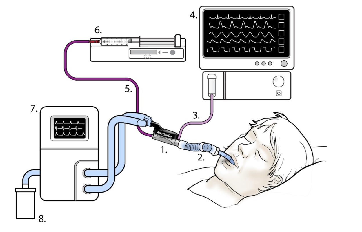 Farrell R, Oomen G, Carey P. A technical review of the history, development and performance of the anaesthetic conserving device "AnaConDa" for delivering volatile anaesthetic in intensive and post-operative critical care. J Clin Monit Comput. 2018 Aug;32(4):595-604. doi: 10.1007/s10877-017-0097-9. Epub 2018 Jan 31. PMID: 29388094; PMCID: PMC6061082.